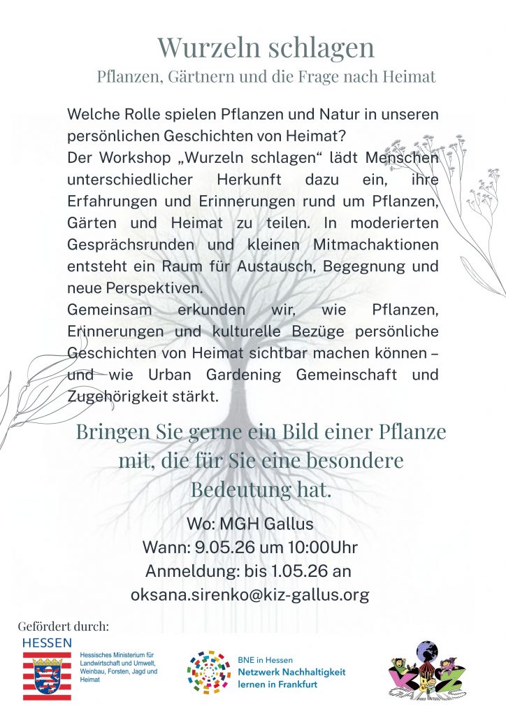 Ein spannender und kreativer Workshop von ca. 2-3 Stunden bei uns im Mehrgenerationenhaus und bei schönem Wetter auch teilweise im Gallus Garten.
